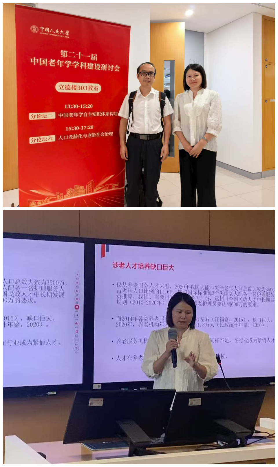 湖南女子学院作为全国首个获批老年学本科专业的院校,为我国老年学专业人才培育体系建设做出了积极贡献。会议期间,社会发展学院专任教师高云霞在“老年学人才培养模式创新”分论坛代表我院发言,就中国式养老背景下老年学人才培养结构优化的理论与实践进行探讨,将我院老年学专业建设从培育层次突破及纵横融通、专业集群建设、课程体系复合发展等多方面创新进行了重点介绍。