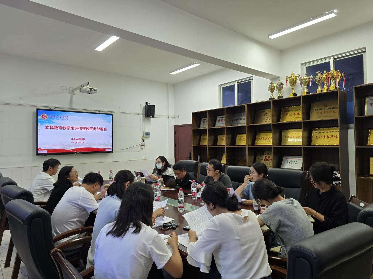 本网讯(社会发展学院 姚瑶)为深入落实预评估专家组反馈的意见,全面推进整改工作,10月10日下午,社会发展学院召开本科教育教学预评估整改专题推进会。教务处副处长黄快生、学院党委书记黄乘政、教学副院长王肖静以及全体教研室主任参会,共同打响了以评促建、以评促改的攻坚战。