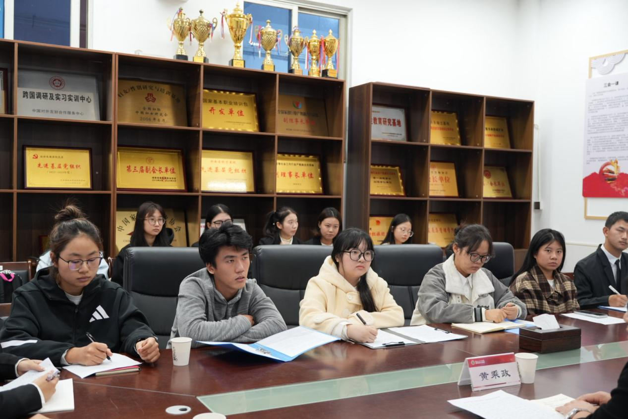 座谈交流环节,学生代表们结合自身专业特点、职业目标与就业意向,积极分享个人职业规划路径及求职准备进展,同时针对学校就业服务工作提出切实需求与建议。22级学前教育的隆琼瑢结合行业趋势表示,随着特殊儿童融合教育需求快速增长,作为架起“融入桥梁”关键角色的“影子老师”职业前景广阔,自己立志成为一名“影子老师”;25级老年学的宋雅婧坦言,作为大一新生,刚入学时身边不少同学都存在迷茫心态,希望学校能围绕考研、考公、教资等方向开展多维度培训课程,帮助新生更快适应大学生活、做好未来规划;22级社会工作的凌毅提出,期待学校链接更多的优质企业资源,为同学们提供更丰富的实习机会,助力积累职场经验。