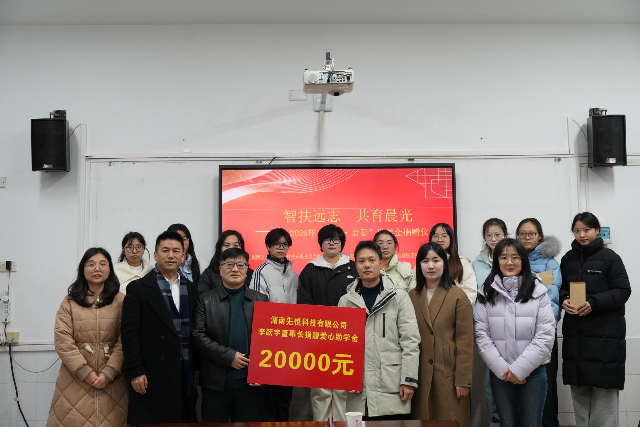 此次与湖南先悦科技有限公司的合作,是学院拓展社会资助渠道、深化资助育人内涵的重要举措,不仅为学院资助育人工作注入了新的活力,更搭建了企业与高校协同育人的桥梁。未来,学院将继续深化“志智双扶”理念,与社会各界携手并肩,共同书写教育报国、共育英才的美好篇章。