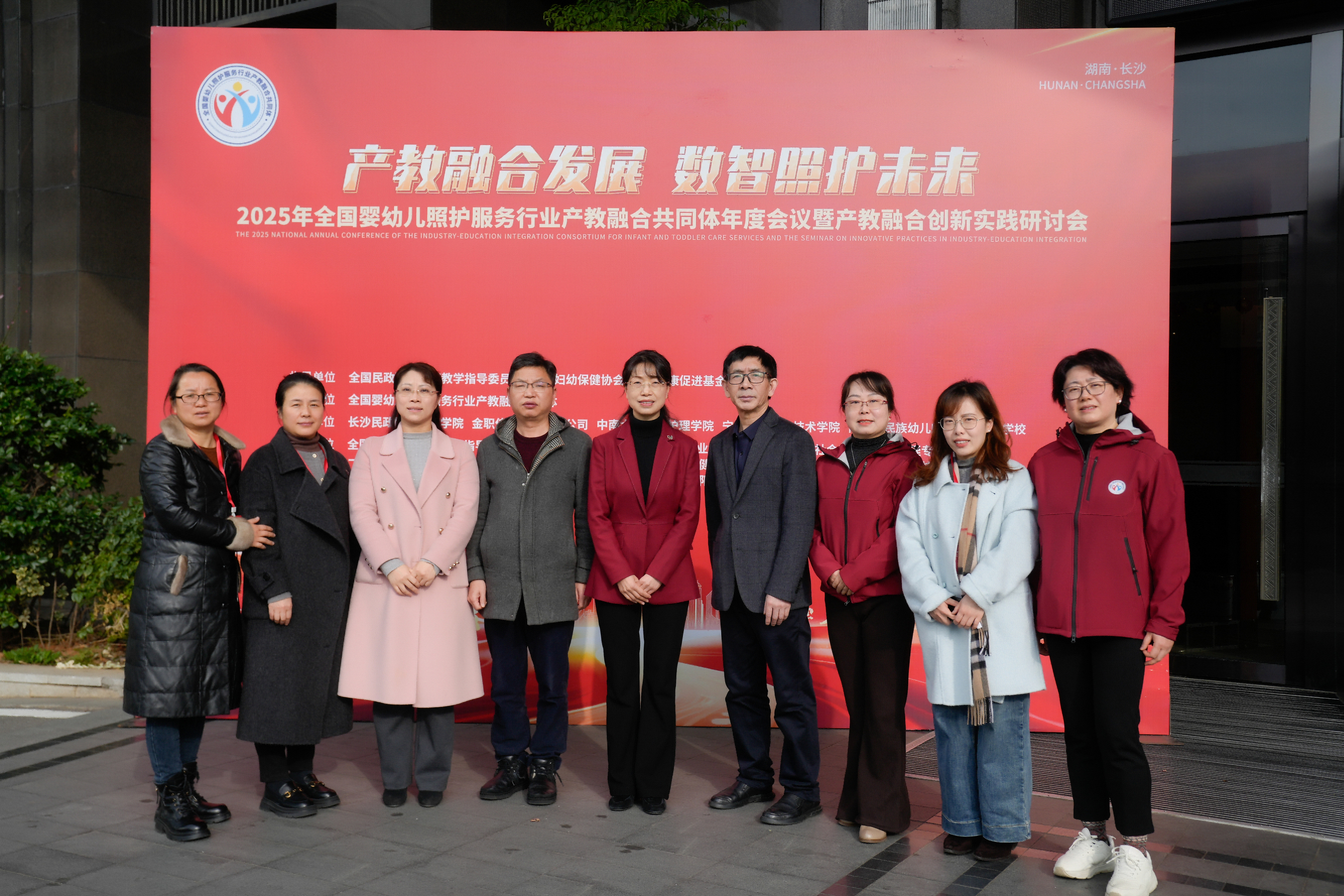 本网讯(社会发展学院 成雁瑛)2026年2月3日上午,全国婴幼儿照护服务行业产教融合共同体2025年全体会议暨产教融合创新实践高峰论坛在长沙开幕。会议以“产教融合发展,数智照护未来”为主题,汇聚了来自全国相关院校、企业、行业组织的领导、专家及代表。校党委书记何旭娟出席会议,科研处、社会发展学院相关负责人以及学前教育专业部分教师共同参加会议。