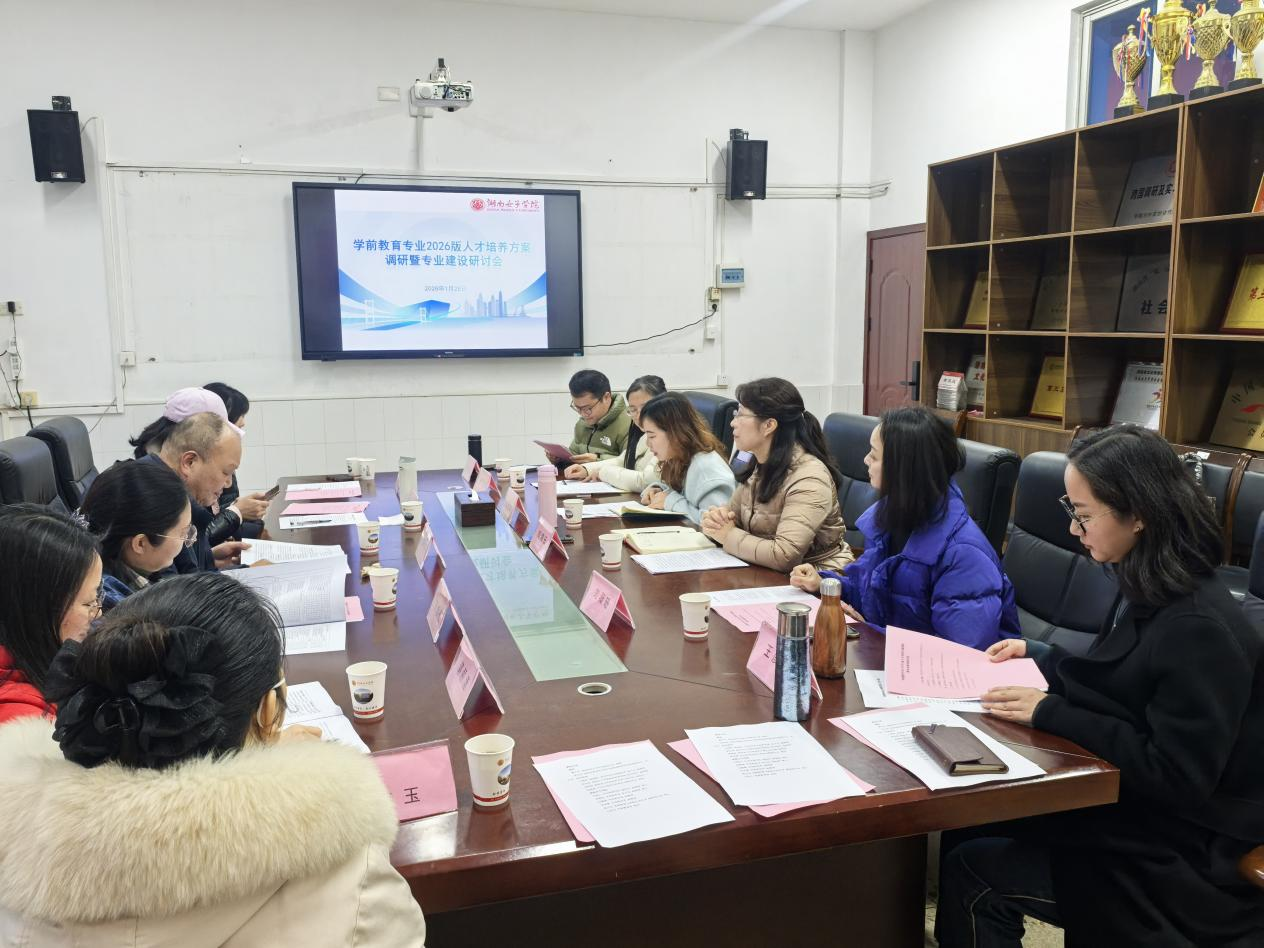 本网讯(社会发展学院 成雁瑛)2026年1月26日下午,学前教育专业2026版人才培养方案调研暨专业建设研讨会在睿智楼102会议
